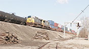 Savanna, Illinois, 138 miles west of Chicago on the Mississippi River, was once one of the busiest railroad towns west of Chicago. Savanna was the first crew change and division point west of Chicago for two class I railroads, the Milwaukee Road and the Burlington. In the late 1950s and early 1960s, more transcontinental streamliners hammered the diamond crossing of the two railroads in Savanna than in any other small town west of Chicago. It was all too good to last. The Milwaukee Road became Canadian Pacific, then I&M Rail Link, Iowa Chicago and Eastern, and finally DM&E, with the shops, yard, and most of the trains gone. Burlington successor Burlington Northern closed the yard and eliminated their crew change in Savanna. Then traffic began to rise on BNSF. With the explosion in crude oil from the Bakken shale oil field, Savanna again became a busy crew base and forty to fifty BNSF trains a day now run through Savanna. BNSF was averaging around seven crude oil trains a day and the corresponding empties through Savanna during our visit in the fall of 2013. Just south of Savanna the BNSF main divides with trains heading east to Chicago and south to Galesburg. This program shows over twenty-four hours of BNSF action in October of 2013 in and around this railfan hotspot, including trains along the Mississippi River and ones viewed from the Palisades that line the east bank of the river north of Savanna. And with BNSF being power short this fall, just about anything can be seen on the head end of their trains. “BNSF around Savanna, Illinois” is a two DVD set and is two hours and 51 minutes in length. This DVD can be watched with or without narration.